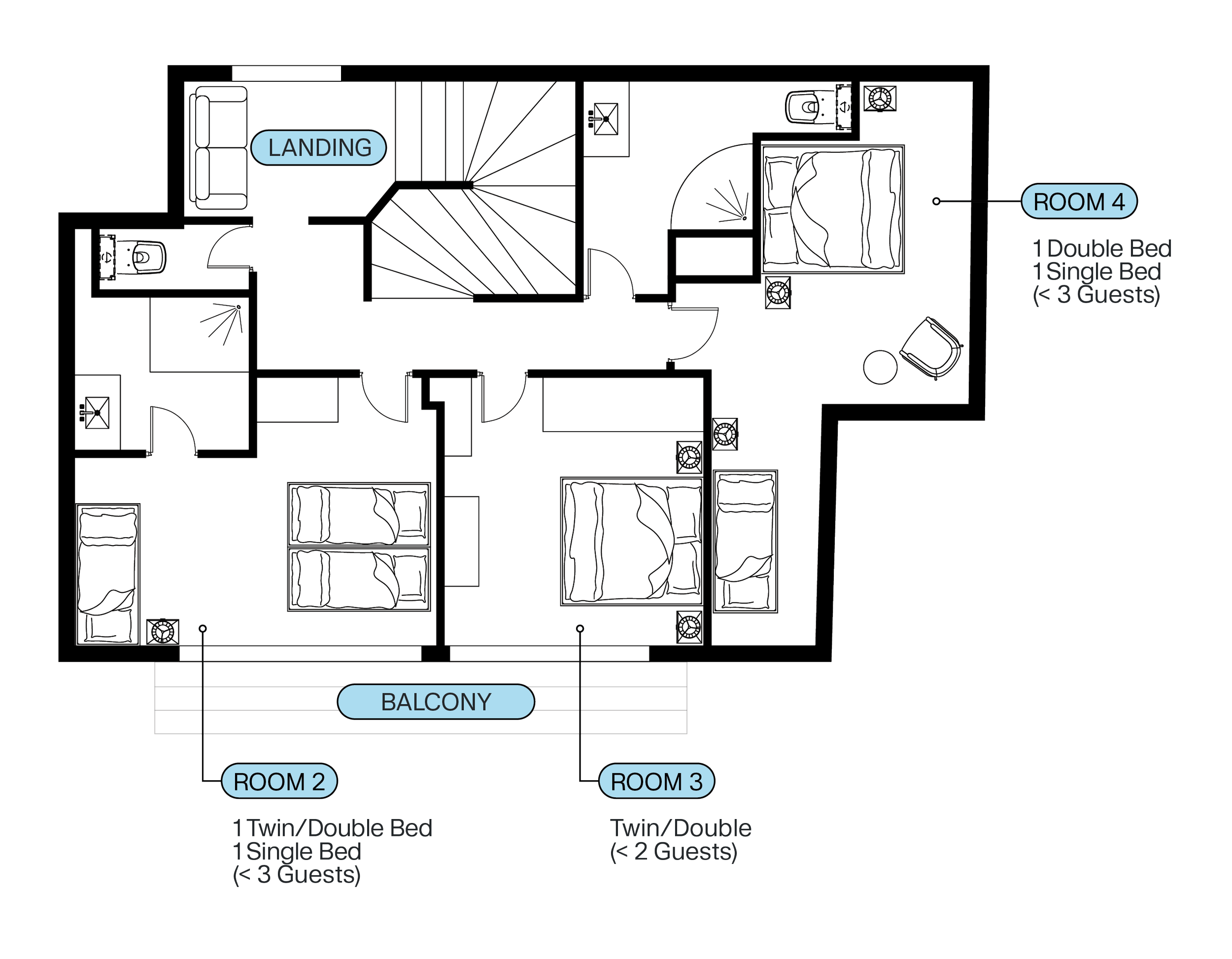 Room 3 - Twin/Double Bedroom with shared shower room